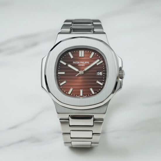 Patek Philippe Geneve Nautilus Luxury Silver Watch | Brown Textured Dial Stainless Steel Edition