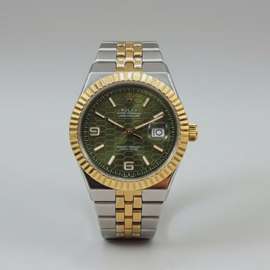 Rolex Oyster Perpetual Land-Dweller Quartz Watch – Two-Tone Gold & Silver with Green Dial