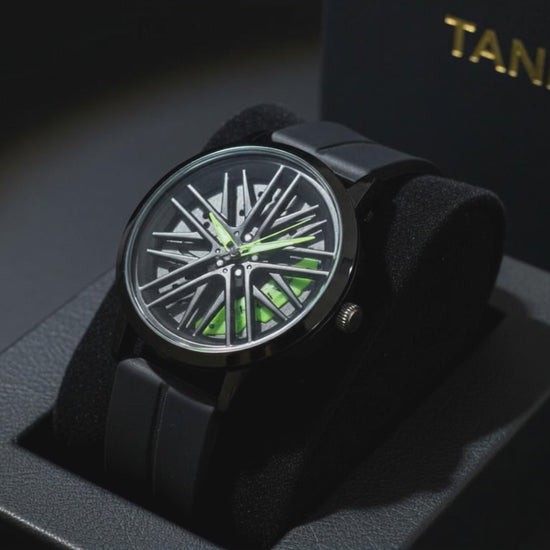 Tanker Black Skeleton Wheel Dial Watch | Neon Green Accent Sport Edition